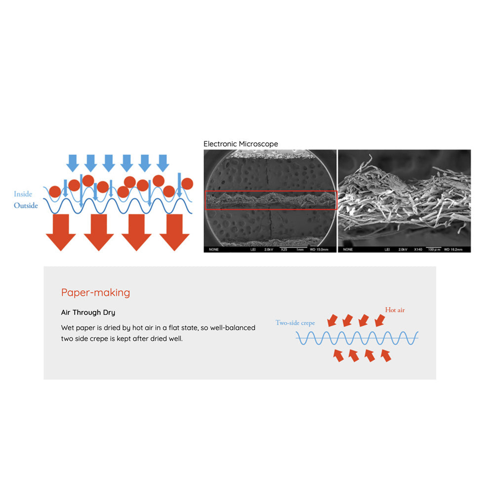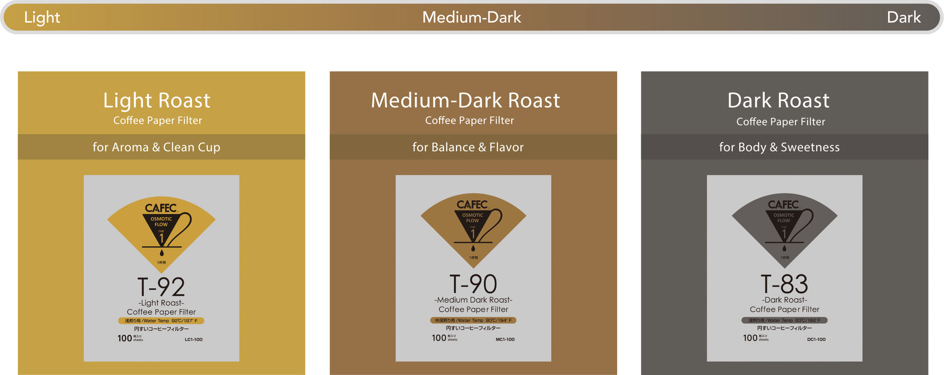 The well-balanced Two-Side Crepe let water flow smoothest. The surface area is largest among the three papers so water path can be kept until last even if all fine powder is attached. Smooth water flow makes a cup with well-balanced rich flavor.